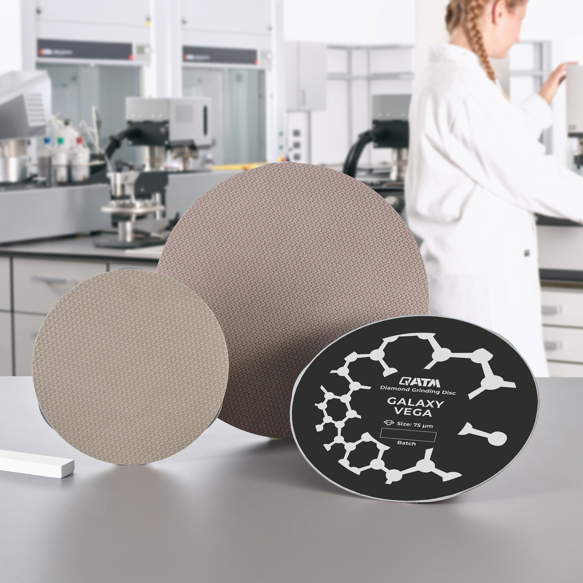 QPREP propose un portefeuille complet de disques abrasifs de différents systèmes de liant, types de grains et granulométrie. Cela permet de trouver la solution optimale pour différentes applications. Tous les éléments abrasifs sont appliqués sur un support métallique. Ainsi, les disques peuvent être appliqués directement sur le film magnétique QPREP sans outils supplémentaires. Les éléments abrasifs fonctionnels ne possèdent qu'une élasticité minimale aux chocs et assurent une surface plane avec une grande netteté des bords. On obtient ainsi un enlèvement de matière exempt de salissures et d'éclats. Les disques abrasifs QPREP permettent d'obtenir des temps de préparation courts et une durée de vie élevée. Cela permet de contribuer largement à un processus durable et respectueux des ressources dans le domaine de la matérialographie.