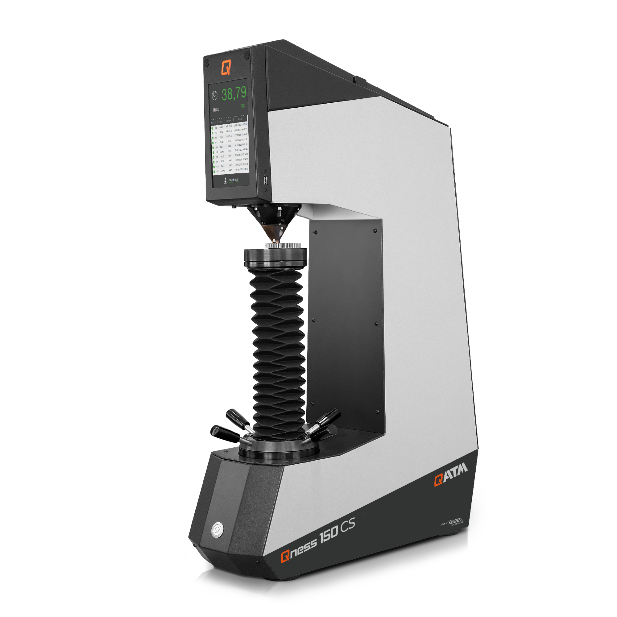 The QATM Rockwell hardness tester series combines sophisticated design with technical innovation. A wealth of comfort functions make operation easy, safe, and fast. Modern software and interfaces allow time-saving automation and integration of the hardness tester into any lab. Due to the large test force range, Rockwell testing can be carried out for many different materials.